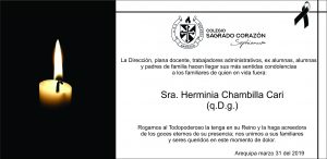 Rogamos por el descanso eterno de quien en vida fuese Sra. Herminia Chambilla Cari, madre de Padre Alberto Condori, clérigo de la Parroquia «Nuestra Señora de los Dolores».